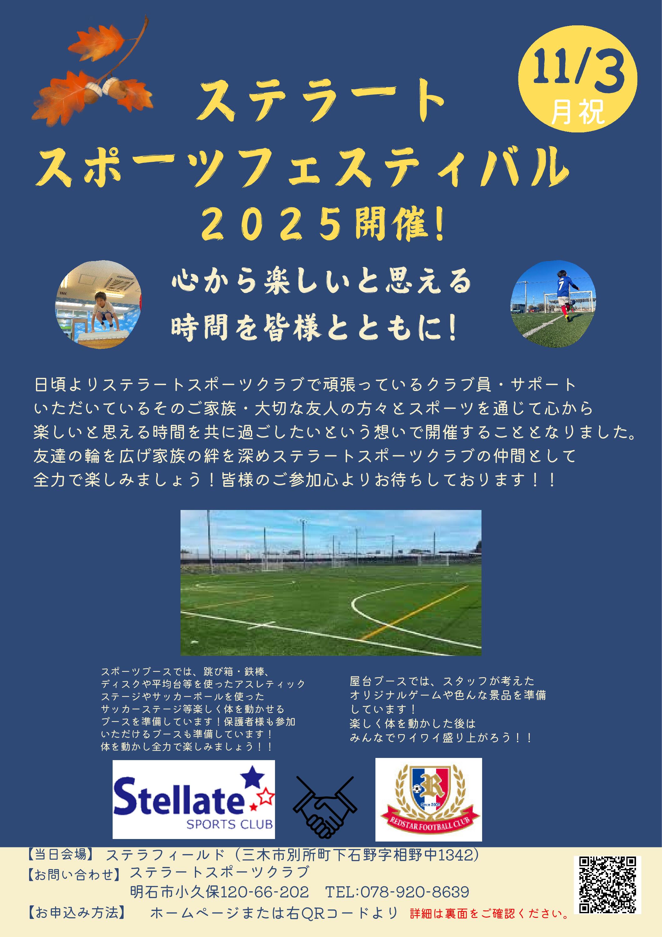 令和7 年8 月12 日( 火) 〜8 月16 日(土 ) の期間につきましては、ステラートスポーツクラブ・REDSTAR FC 共に夏期休業となります。